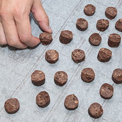 生地が均一な状態になったら棒状に成型して、冷蔵庫で10分程度休ませ、好みの厚さにカットする。