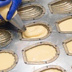 卵をほぐして、ハチミツ、グラニュ糖、薄力粉とベーキングパウダーを合わせてふるったものを加え、その都度よく混ぜ合わせる。