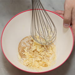 ポマード状にしたバターにバニラオイル、カソナードとグラニュ糖、ゲランド塩を入れてよく混ぜる。