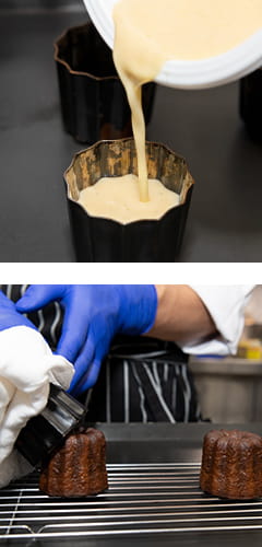 翌日、専用の型に注ぎ入れ上火190℃下火170℃で80分焼成してできあがり!