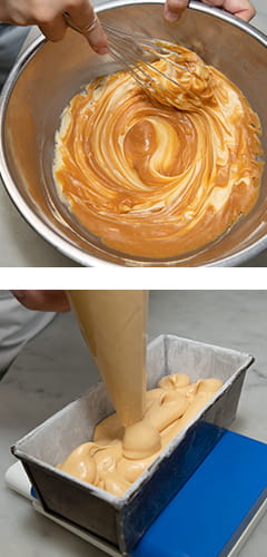 2とキャラメルソース124g分を合わせて型に流す(残ったキャラメルソースはアイスやクレープ、ホットケーキなどにかけても美味しい!)