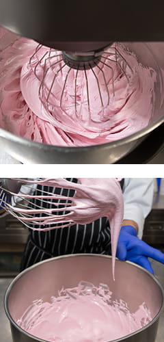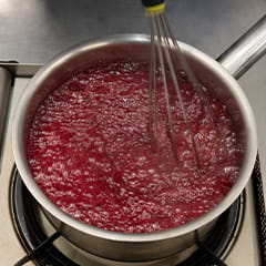 上記にゼラチンを加え、ミキサー(ハンドブレンダーでも可)の高速で泡立てる。