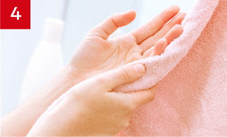 ぬるま湯で洗い流し、水分をタオルで優しく拭きとる※オイルのベタつきが気になる方は、石鹸で洗い流す